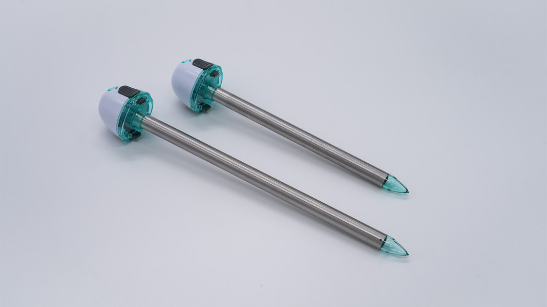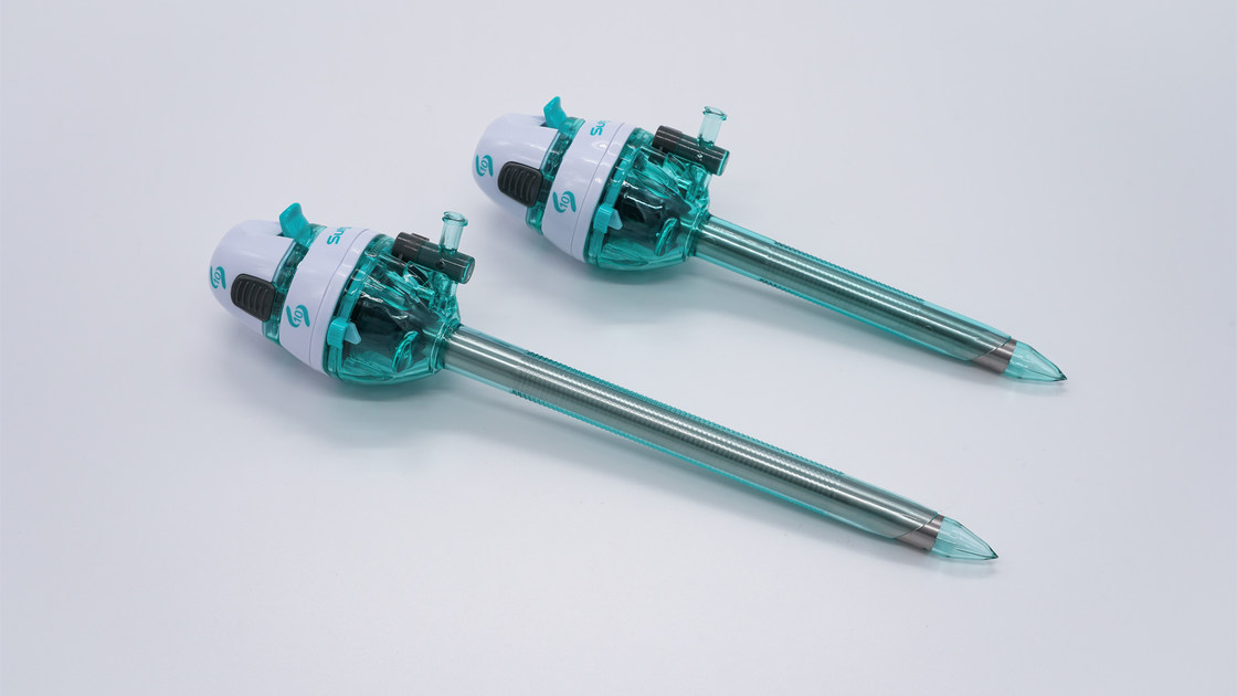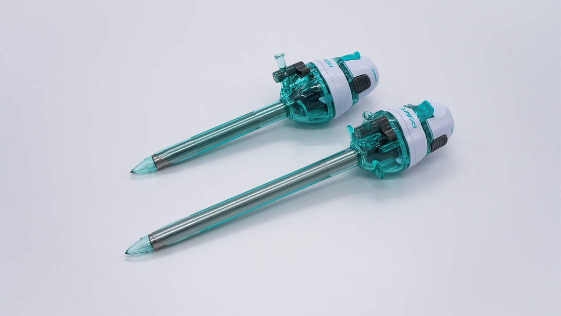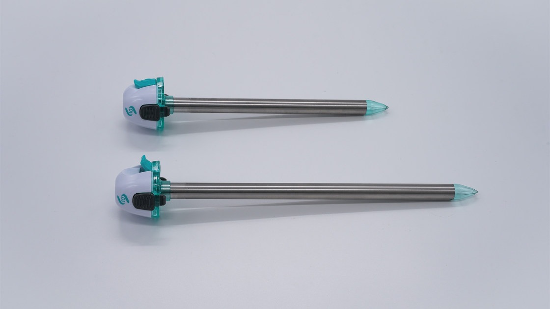 Die Spitzen von Endopass-trocars sind blattlos. Sie haben wenige Plastik‚Flügel‘ am Ende von obturator, die das, Gewebe zu zergliedern helfen und zu drücken, das anstatt es, zu schneiden schwer zugänglich ist. Es holt weniger Schaden der Bauchdecke und der schnelleren postoperativen Wiederaufnahme.